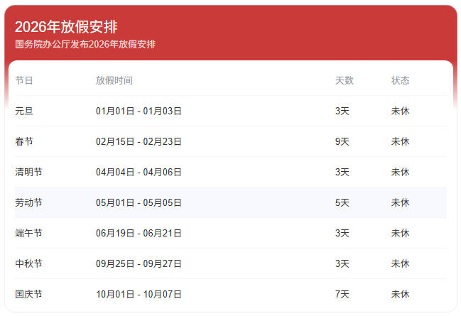 附:关于2026年部分节假日安排